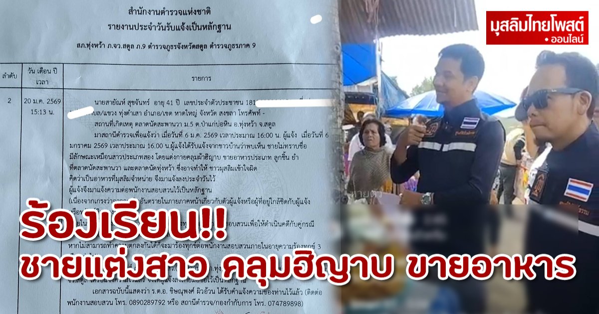 ร้องเรียน!! ชายแต่งสาว คลุมฮิญาบ ขายอาหาร